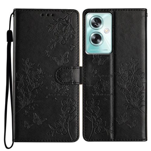 Funda de Cuero con Relieve de Mariposa y Flor para Oppo A79/A2 5G (Negra)