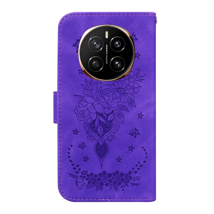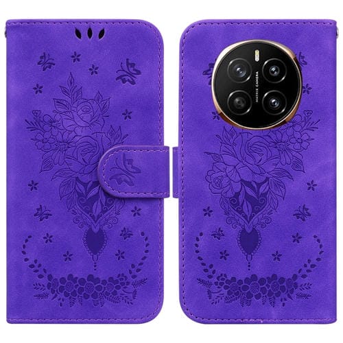 Funda de Cuero con Relieve Mariposa y Rosa para Honor Magic7 (Morado)