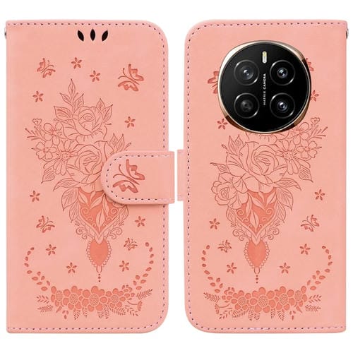 Funda de Cuero con Relieve Mariposa y Rosa para Honor Magic7 (Rosa)