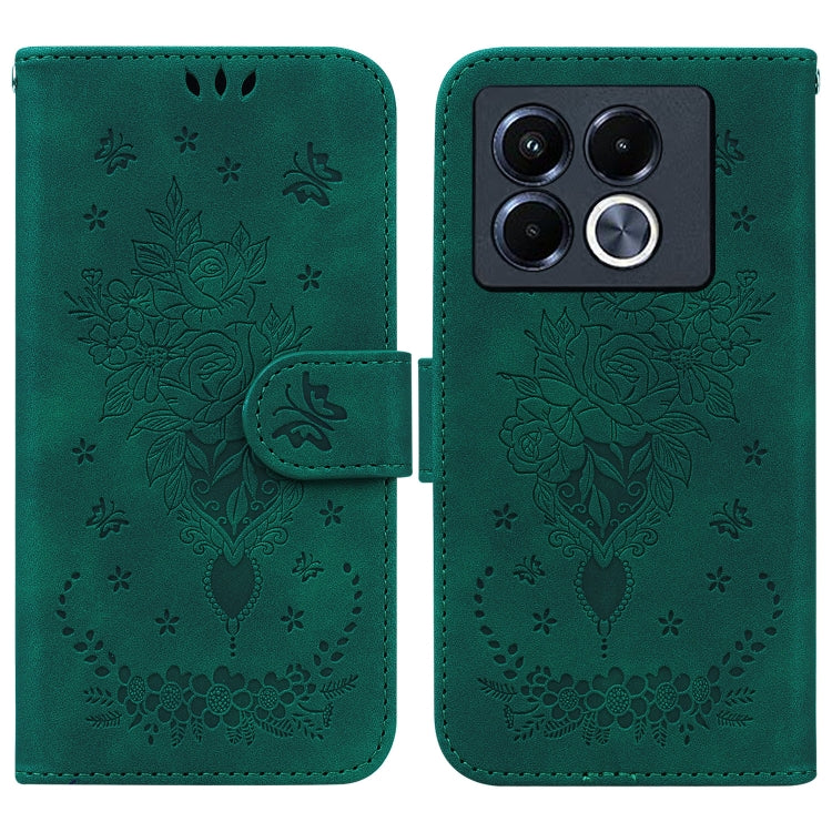 Funda de Cuero con Relieve Mariposa y Rosa para Infinix Note 40 5G (Verde)