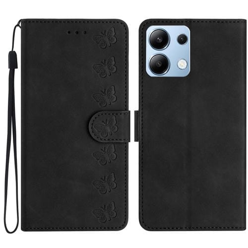 Funda de Cuero con Relieve de Siete Mariposas para Redmi Note 13 4G (Negra)