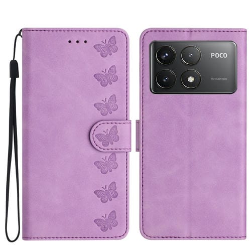 Funda de Cuero con Relieve de Siete Mariposas para Xiaomi Poco F6 Pro (Morado)