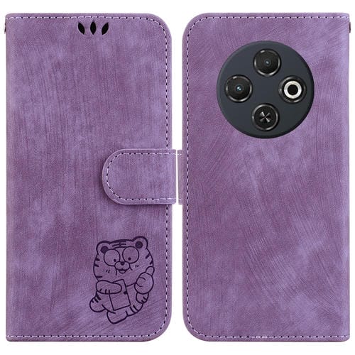 Funda de Cuero con Relieve de Tigre para Tecno Spark 30C (Morado)