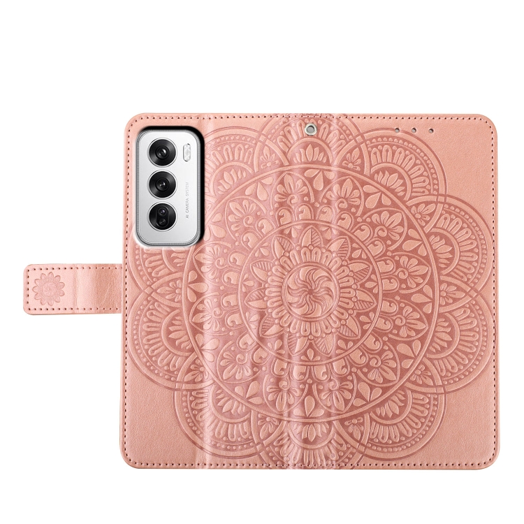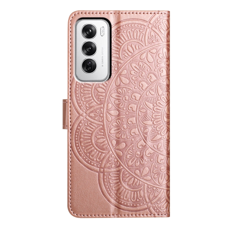 Funda de Cuero con Relieve Floral para Oppo Reno12 Global (Oro Rosa)
