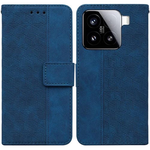 Funda De Cuero Con Relieve Geométrico Para Xiaomi 15 (Azul)