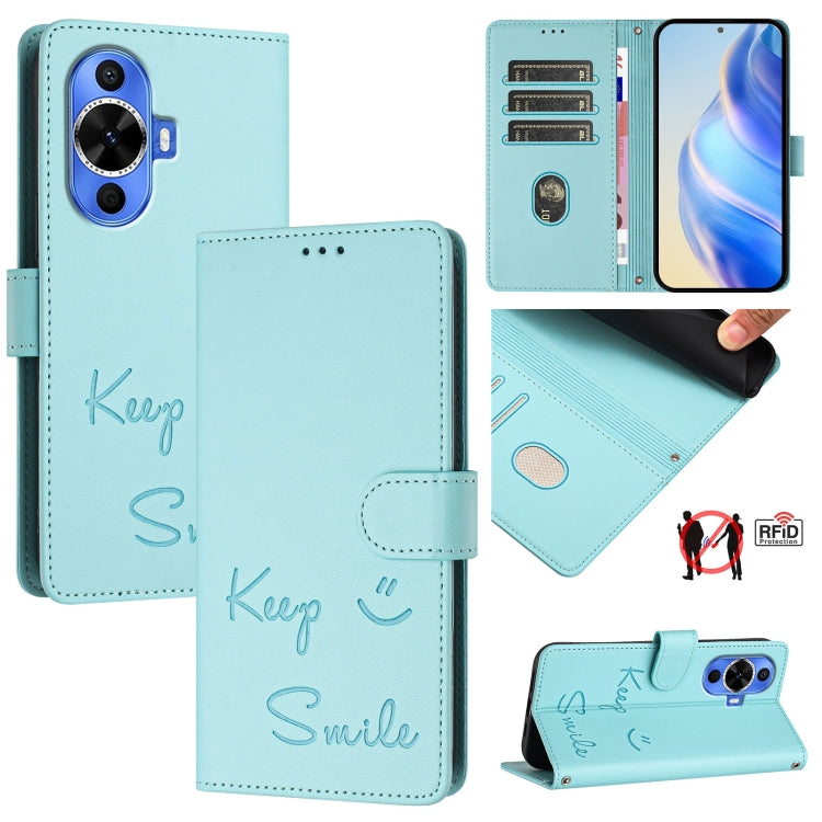 Funda de Cuero con Relieve Rfid para Huawei Nova 12S 4G Global Smile (Verde Menta)
