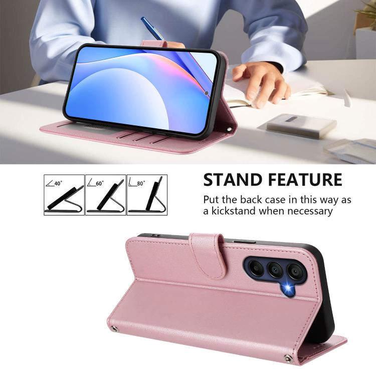 Funda de cuero con relieve RFID y cordón para Samsung Galaxy A26 5G (rosa)
