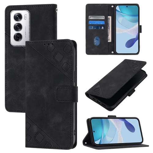 Funda de Cuero con Relieve y Tacto de Piel para Oppo Reno12 5G (Negra)