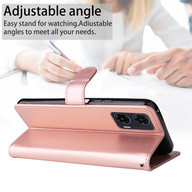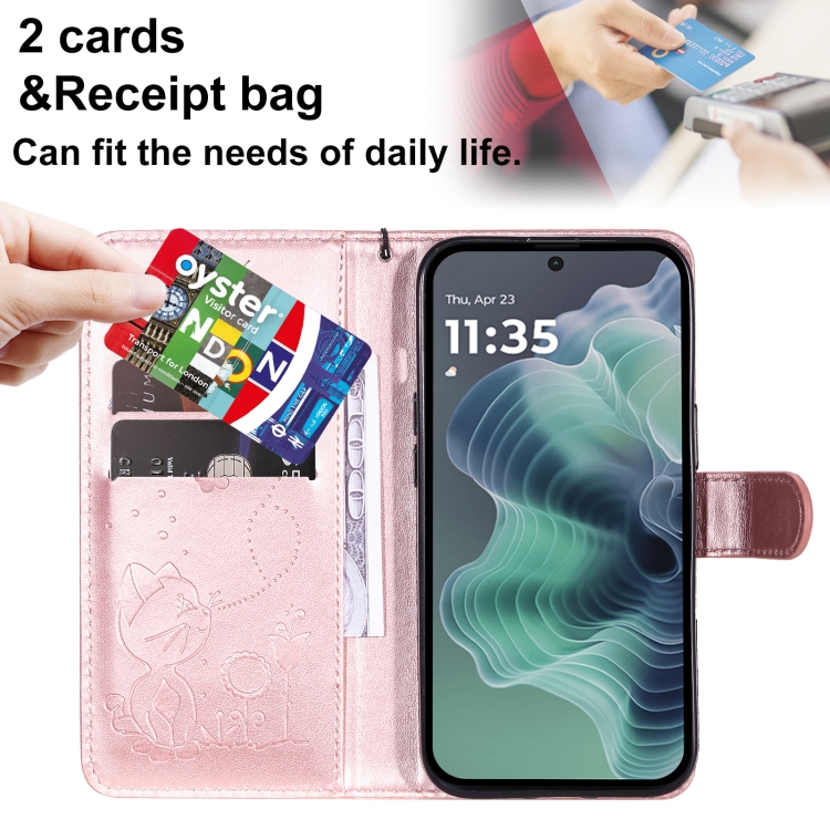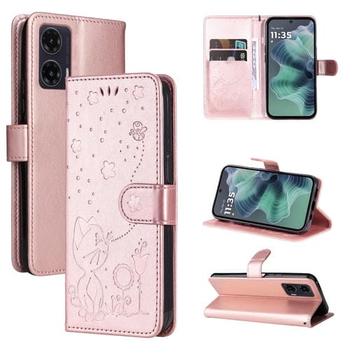 Funda de Cuero con Tapa para Motorola Moto G35 con Diseño de Gato y Abeja (Oro Rosa)