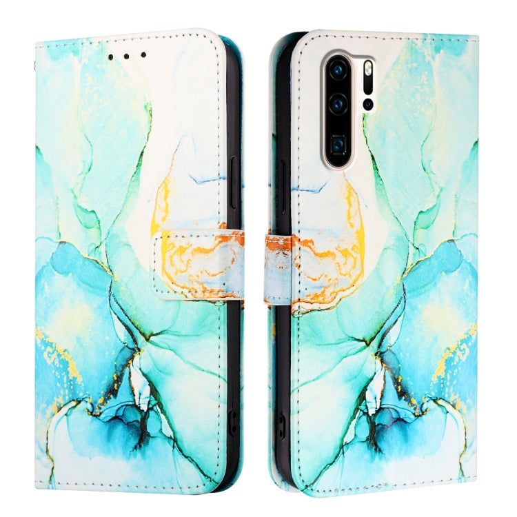 Funda de Cuero con Tapa Patrón Mármol Pt003 para Huawei P30 Pro (Verde)