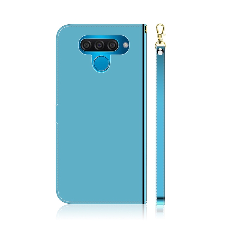 Funda de Cuero con Tapa Horizontal y Espejo para LG Q60 con Soporte, Ranuras, Billetera y Cordón (Azul)