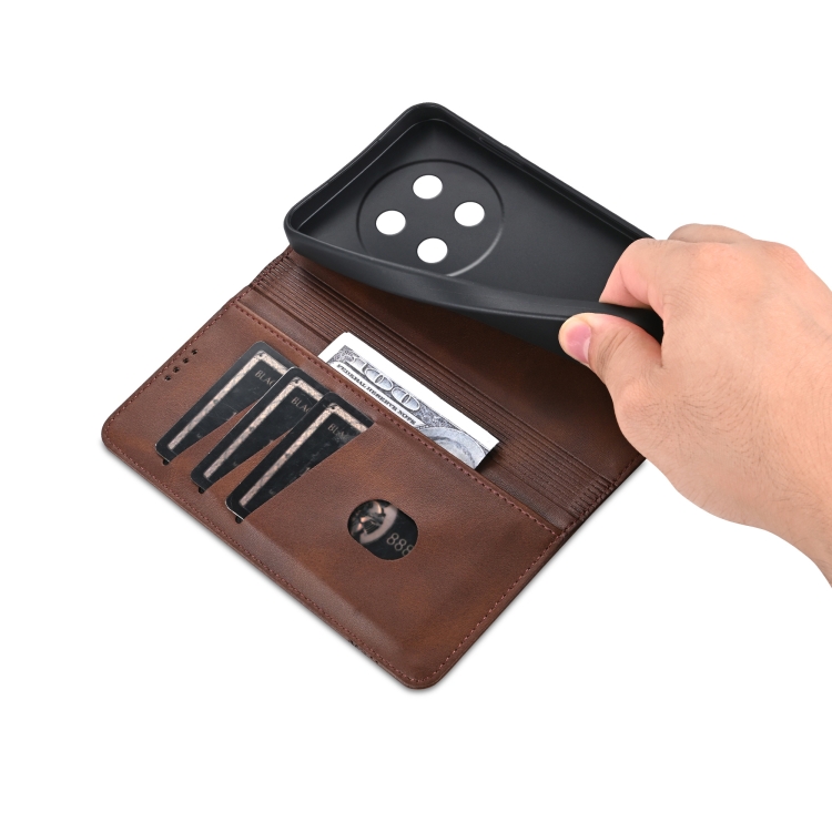 Funda de Cuero Azns con Tapa Magnética Textura de Piel de Becerro para Honor X60 Pro (Marrón Oscuro)