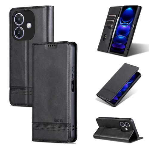 Funda de Piel con Tapa Magnética Azns para Oppo A3X 4G (Negro)