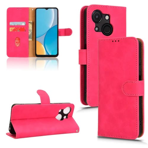Funda de Cuero con Tapa Magnética para Teléfono Itel A50C (Rosa y Rojo)
