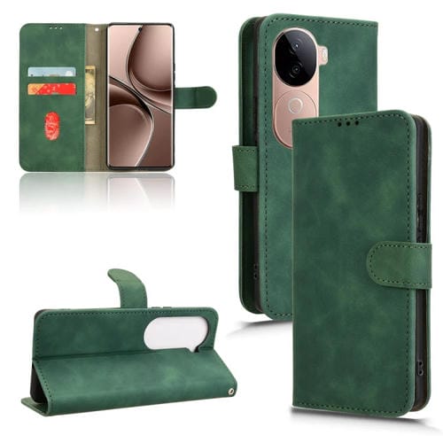 Funda de Cuero con Tapa Magnética y Tacto Agradable para El Tacto de la Piel para Vivo V40E 5G India/Iqoo Z9S 5G (Verde)