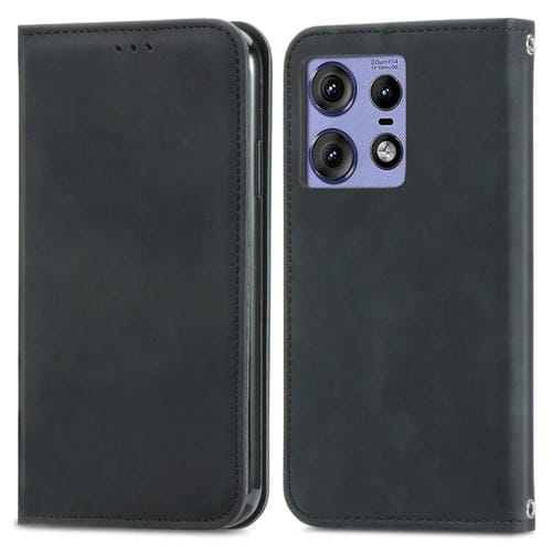 Funda de Cuero con Tapa Magnética y Tacto Retro para Motorola Edge 50 (Negra)
