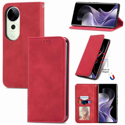 Funda de Cuero con Tapa Magnética y Tacto Retro para Vivo T3 Ultra (Rojo)