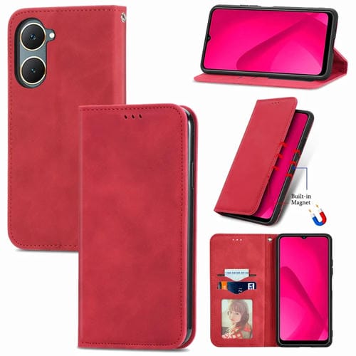 Funda de Cuero con Tapa Magnética y Tacto Retro para Vivo Y18E (Rojo)