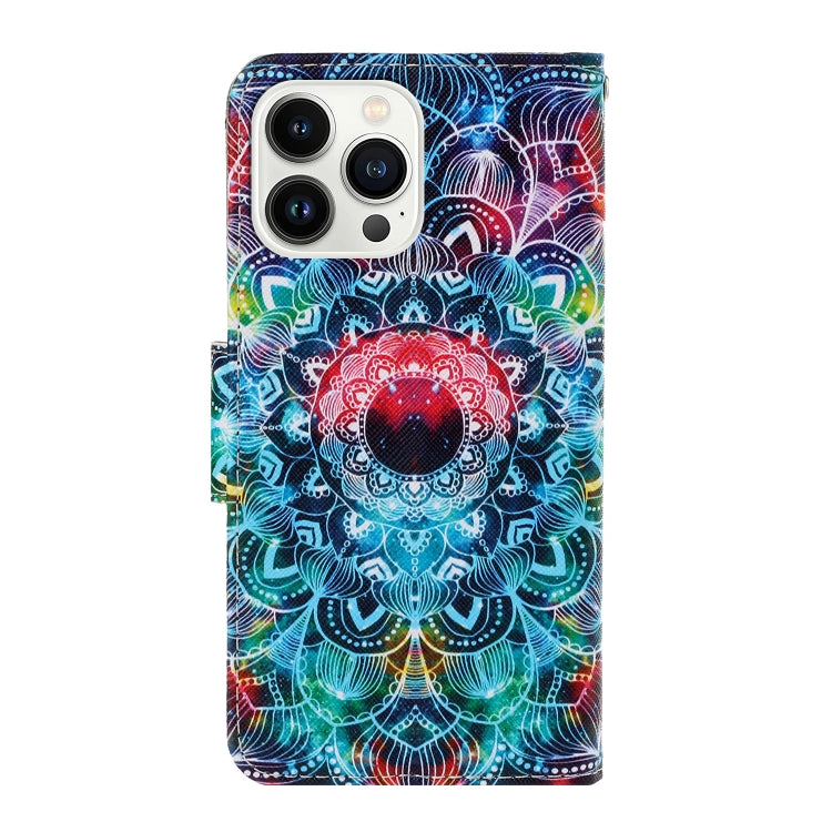 Funda de Cuero con Tapa para iPhone 16 Pro Dibujo en Color 3D (Mandala)