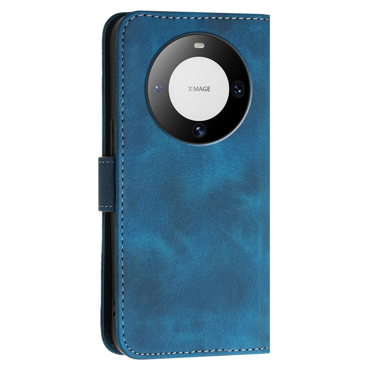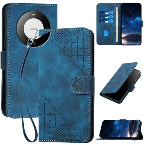 Funda de Cuero con Tapa y Cordón para Huawei Mate 60 Pro Yx0080 con Diseño en Relieve (Azul Oscuro)
