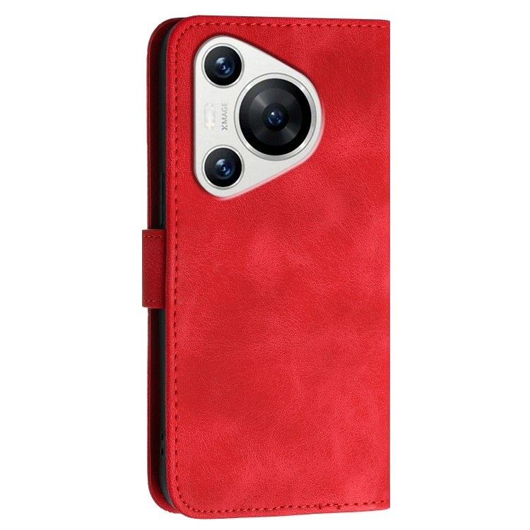- 1x Funda de Cuero con Tapa y Cordón para Huawei Pura 70 Yx0080 Diseño Mariposas y Cuadrícula (Rojo)
