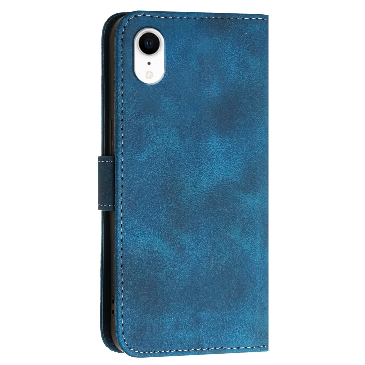 Funda de Cuero con Tapa y Cordón para iPhone Xr Yx0080 Diseño Mariposa y Cuadrícula (Azul Oscuro)