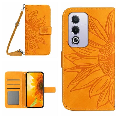 Funda de Cuero con Tapa y Cordón para Oppo A3 Pro 5G India/K12X 5G Global con Diseño de Girasol En Relieve y Tacto de Piel (Amarillo)
