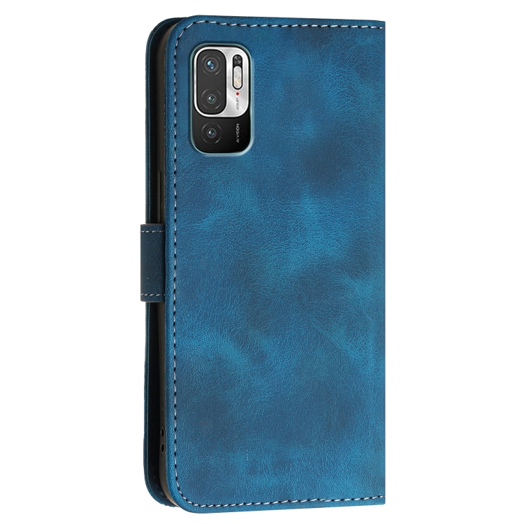 Funda de Cuero con Tapa y Cordón para Redmi 10 Yx0080 con Diseño de Mariposa En Relieve y Cuadrícula (Azul Oscuro)