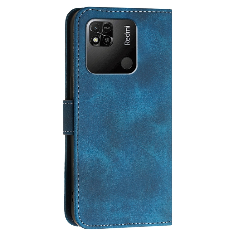 Funda de Cuero con Tapa y Cordón para Redmi 10A Yx0080 con Diseño de Mariposa En Relieve y Cuadrícula (Azul Oscuro)