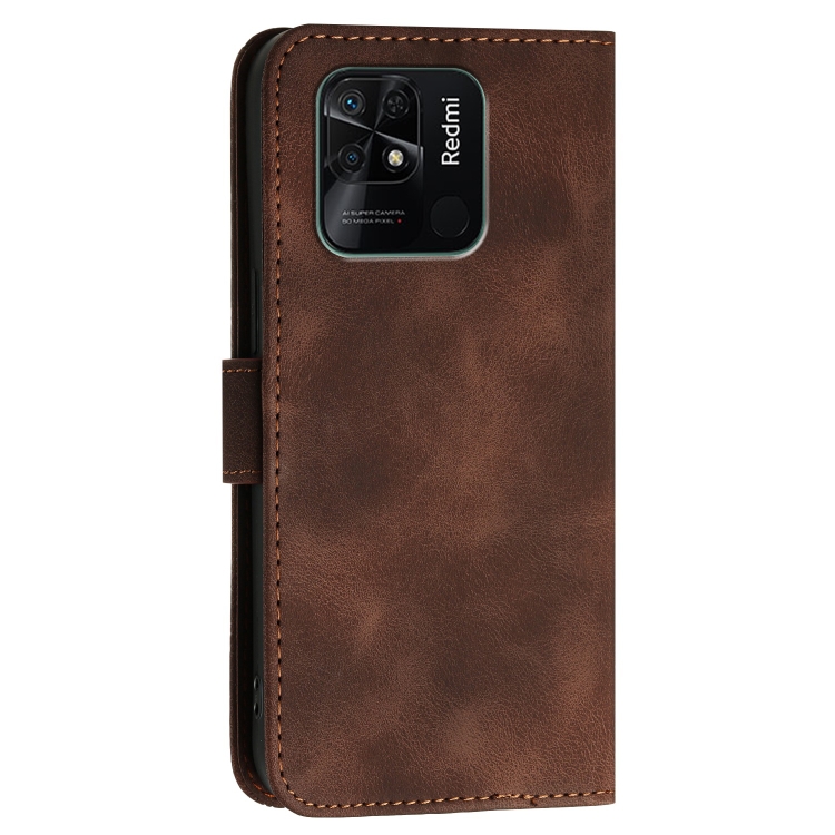 Funda de Cuero con Tapa y Cordón para Redmi 10C Yx0080 con Diseño En Relieve de Mariposa y Cuadrícula (Café)