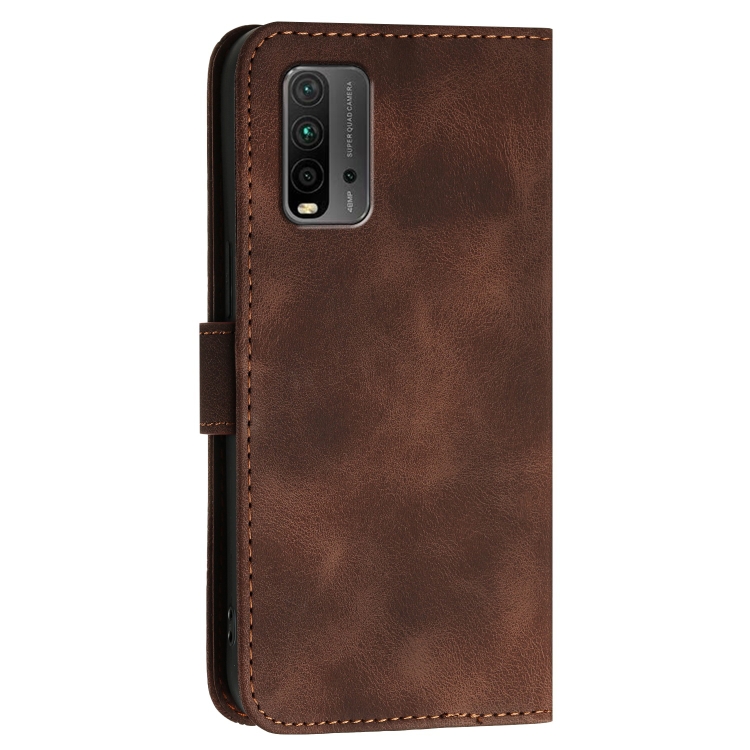 Funda de Cuero con Tapa y Cordón para Redmi 9T Yx0080 con Diseño En Relieve de Mariposa y Cuadrícula (Café)