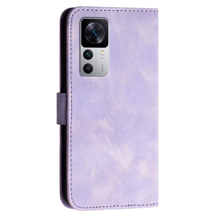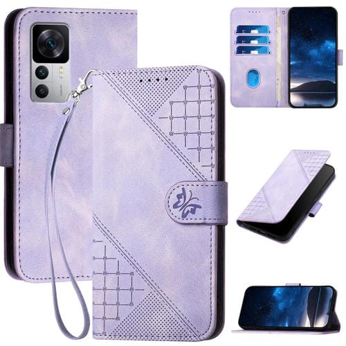 Funda de Cuero con Tapa y Cordón para Redmi K50 Ultra Yx0080 con Diseño de Mariposa En Relieve y Cuadrícula (Morado Claro)