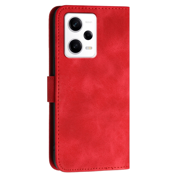 Funda de Cuero con Tapa y Cordón para Redmi Note 12 Pro Yx0080 con Diseño de Mariposa En Relieve y Cuadrícula (Rojo)