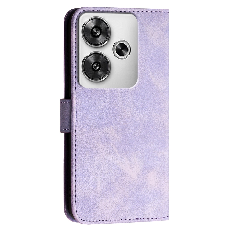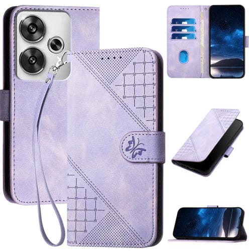 Funda de Cuero con Tapa y Cordón para Redmi Turbo 3 Yx0080 con Diseño En Relieve de Mariposas y Cuadrícula (Morado Claro)
