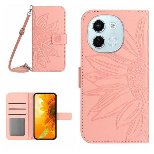 Funda de Cuero con Tapa y Cordón para Tecno Spark 30 5G con Diseño de Girasol (Rosa)