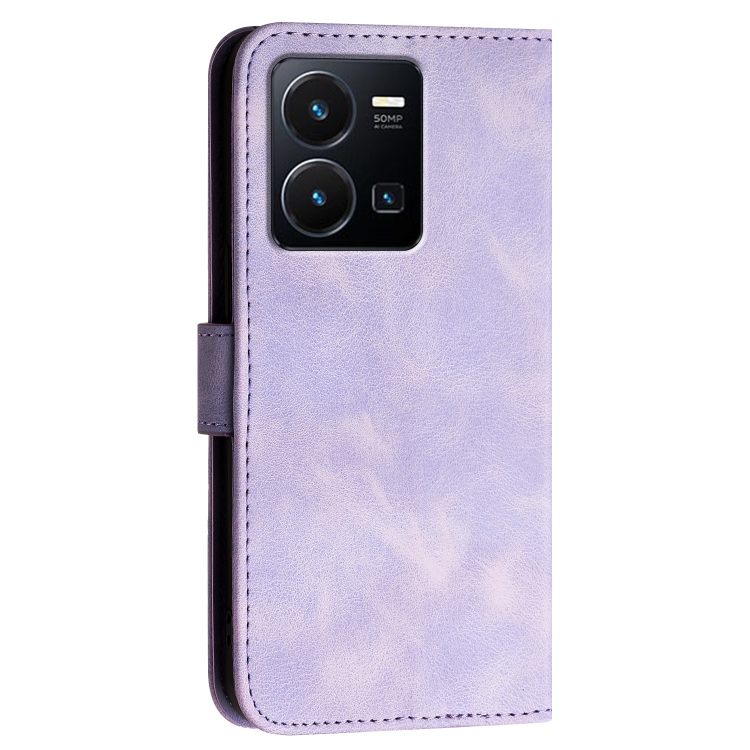 Funda de Cuero con Tapa y Cordón para Vivo Y77E 5G Yx0080 con Diseño En Relieve de Mariposa y Cuadrícula (Morado Claro)