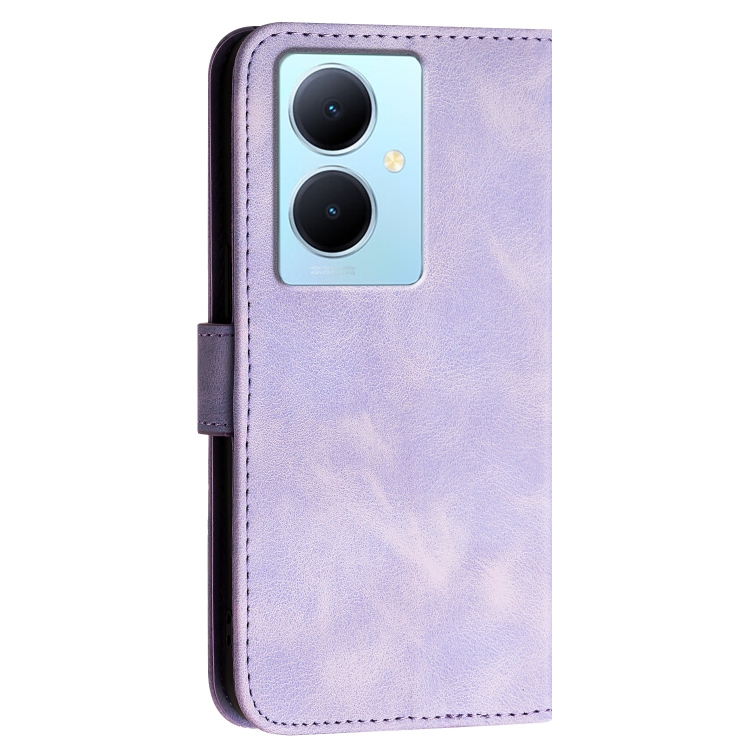 Funda de Cuero con Tapa y Cordón para Vivo Y78+ 5G Global / V29 Lite Yx0080 con Diseño En Relieve de Mariposa y Cuadrícula (Morado Claro)