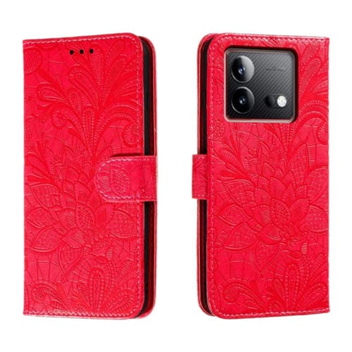 Funda de Cuero con Tapa y Diseño de Flores con Encaje para Vivo Iqoo Neo8 (Rojo)