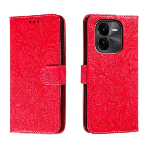 Funda de Cuero con Tapa y Diseño de Flores con Encaje para Vivo Iqoo Z9X (Rojo)