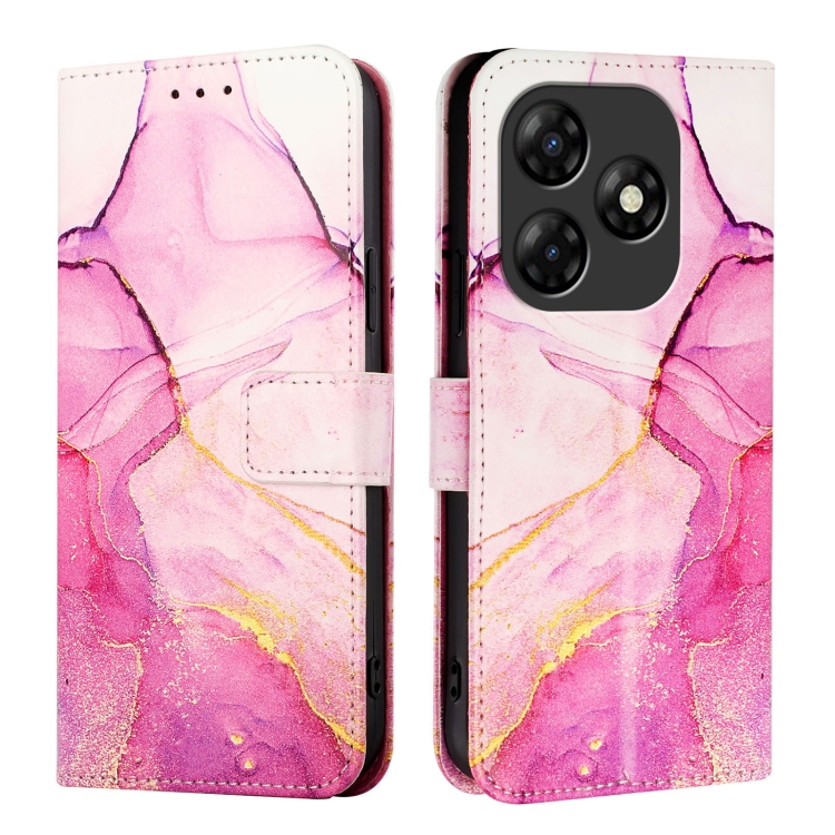 Funda de Cuero con Tapa y Diseño de Mármol para Itel P55 4G Pt003 (Rosa, Morado y Dorado)