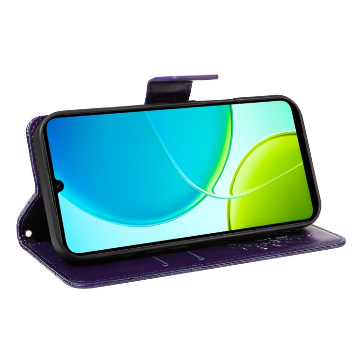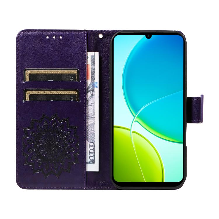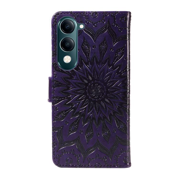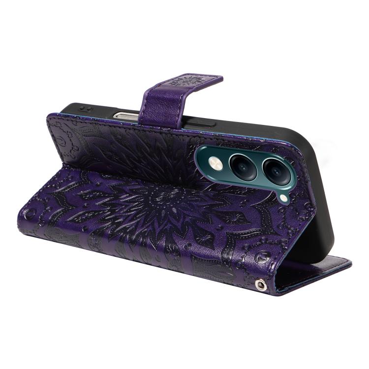 Funda de Cuero con Tapa y Estampado de Girasoles En Relieve para Vivo Y29S 5G/Y04 (Morado)