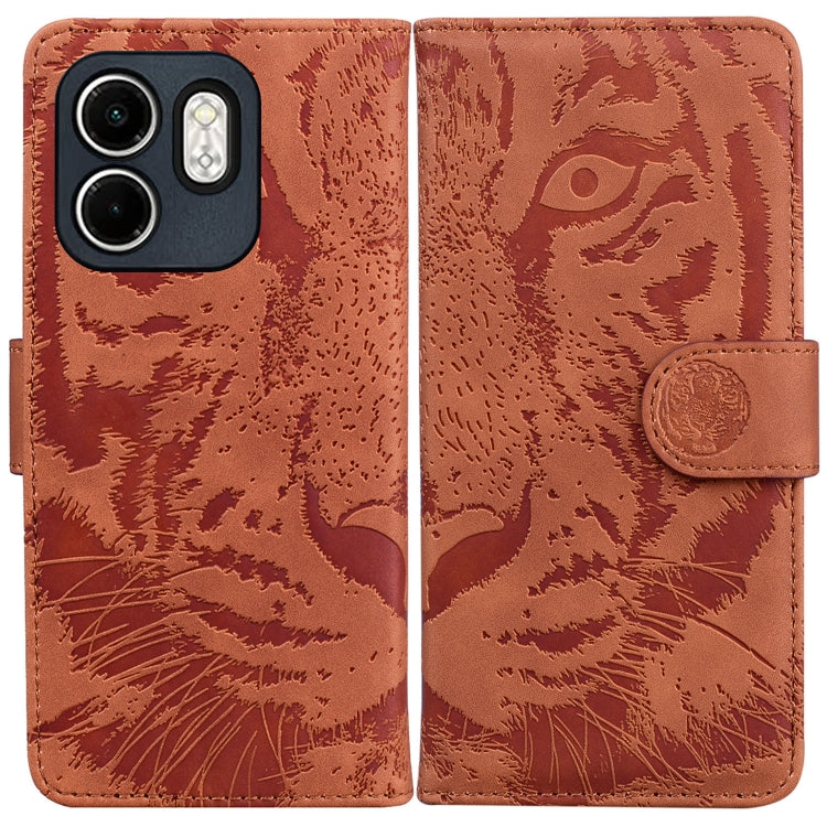 Funda de Cuero con Tapa y Estampado de Tigre para Infinix Hot 50I y Smart 9 (Marrón)