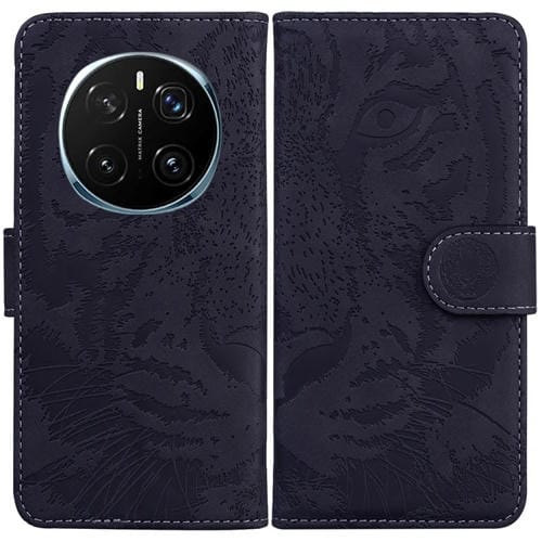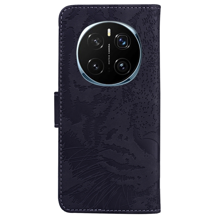 Funda de Cuero con Tapa y Estampado de Tigre para Honor Magic7 Pro (Negra)