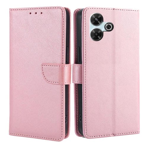 Funda de Cuero con Tapa y Hebilla con Textura de Becerro para Redmi 13 4G (Oro Rosa)
