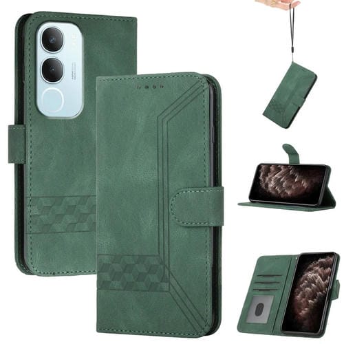 Funda de Cuero con Tapa y Tacto de Piel Cúbica Global para Vivo Y19S (Verde)