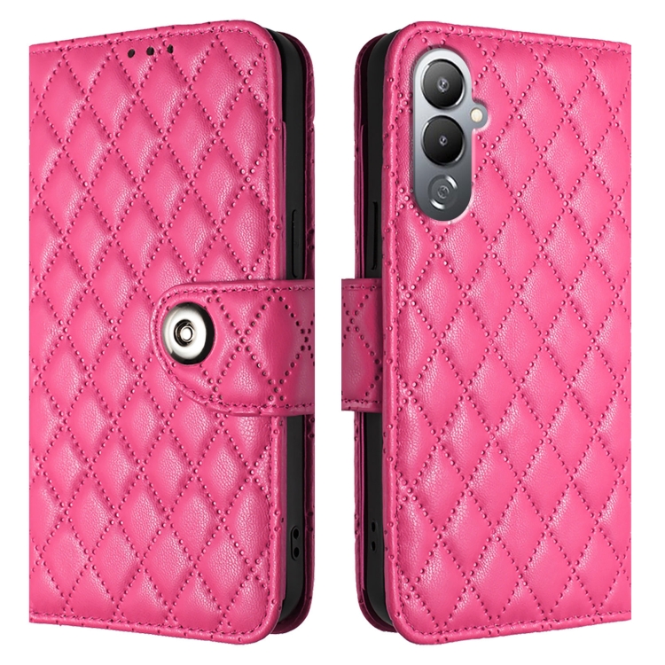 Funda de Cuero con Tapa y Textura Rombal para Tecno Pova 4 Pro con Cordón (Rosa y Rojo)