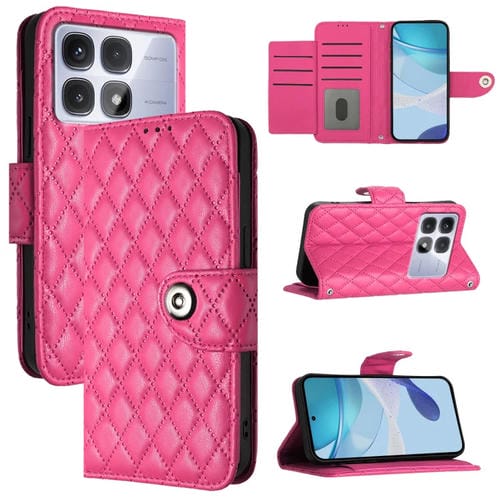Funda de Cuero con Tapa y Textura Rómbica para Redmi K70 Ultra 5G con Cordón (Rosa y Rojo)