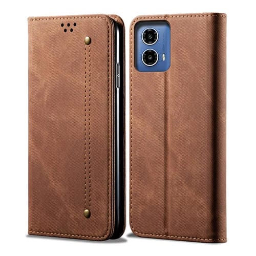 Funda de Cuero con Tapa y Textura Vaquera para Motorola Moto G35 (Marrón)