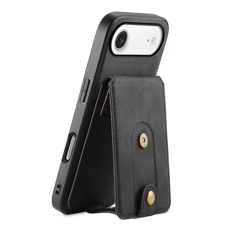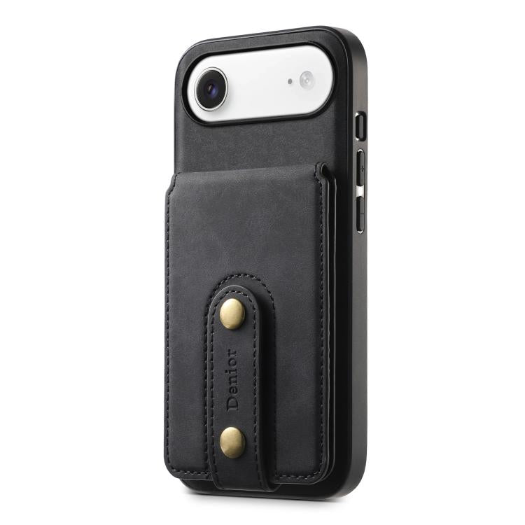 Funda de cuero con tarjetero magnético MagSafe para iPhone Air Denior D14 NK con diseño retro (negro)