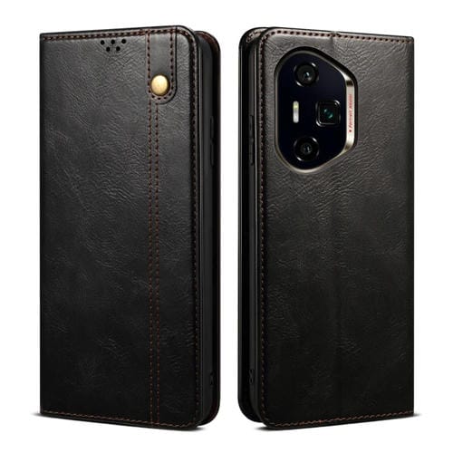 Funda de Cuero Crazy Horse con Cera de Aceite para Honor 300 Ultra 5G (Negro)